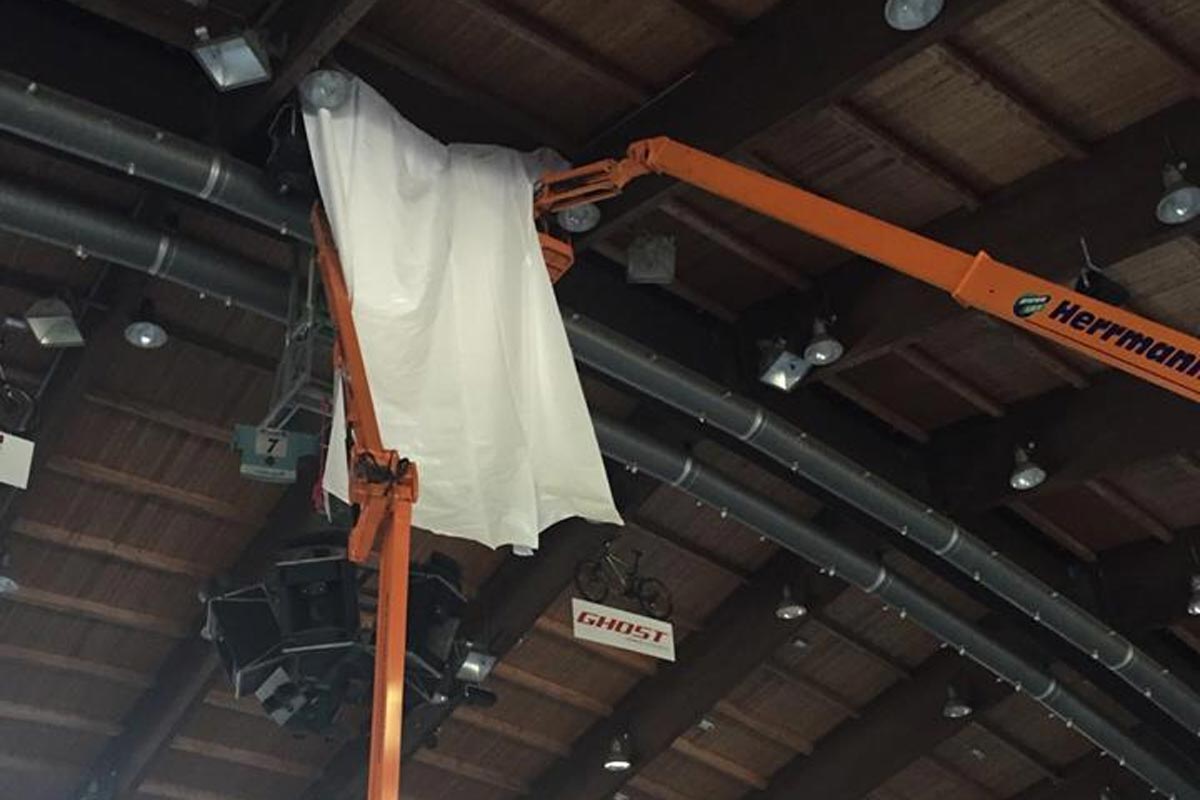 Angesichts der bevorstehenden neuen Eishockeysaison und der damit verbundenen Eisaufbereitungen, war schnelles Handeln notwendig. Ein großer Dank des VER Selb geht hier an die Stadt Selb, unbürokratisch eine schnelle Lösung anbot. Nach vorerst provisorischem Abhängen der Hallendecke (Bild_001+002) mit Planen entschied die Stadt Selb im Eilverfahren, eine Dachsanierung vorzunehmen, welche voraussichtlich 3-4 Wochen dauern und dabei das beschädigte und undichte Dach der Westseite repariert wird.