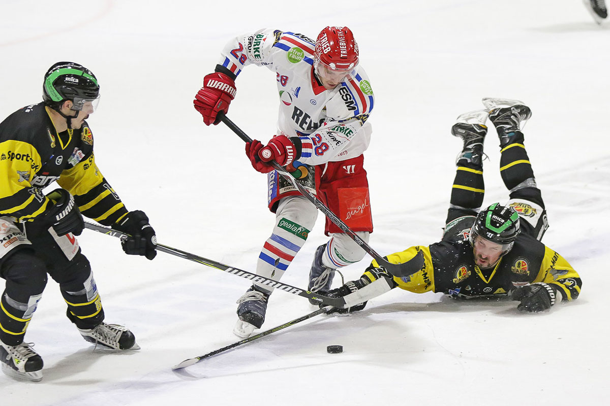 Fällt der vorentscheidende fünfte Wölfe-Treffer oder gleichen die Bulls aus und es kommt zum großen Zittern? Leider letzteres, denn gut 12 Minuten vor Ende stellten die Hausherren auf 4:4. In Überzahl – Hördler saß eine Strafe wegen Hakens ab – leitete Kames eine hochspannende Schlussphase ein. Das große Zittern begann, unsere Wölfe ihrerseits steckten nicht auf, aber leider fehlte es wie so oft an der Präzision: McDonald traf nur den Außenpfosten. Beide Goalies standen nur mehrmals im Mittelpunkt, Deske noch mehr, da kurz vor Ende noch ein Unterzahlspiel überstanden werden musste. Deske war es auch, der mit einem Wahnsinns-Save gegen Slaventinsky seine Mannschaft in die Verlängerung rettete. Unsere Wölfe mit den ersten guten Szenen, McDonald zweiter Sieger gegen Goalie Glatzel, der sich aber kurz vor Ende der Overtime geschlagen geben musste. McDonald mit dem „Golden Goal“ sichert den zweiten Punkt.