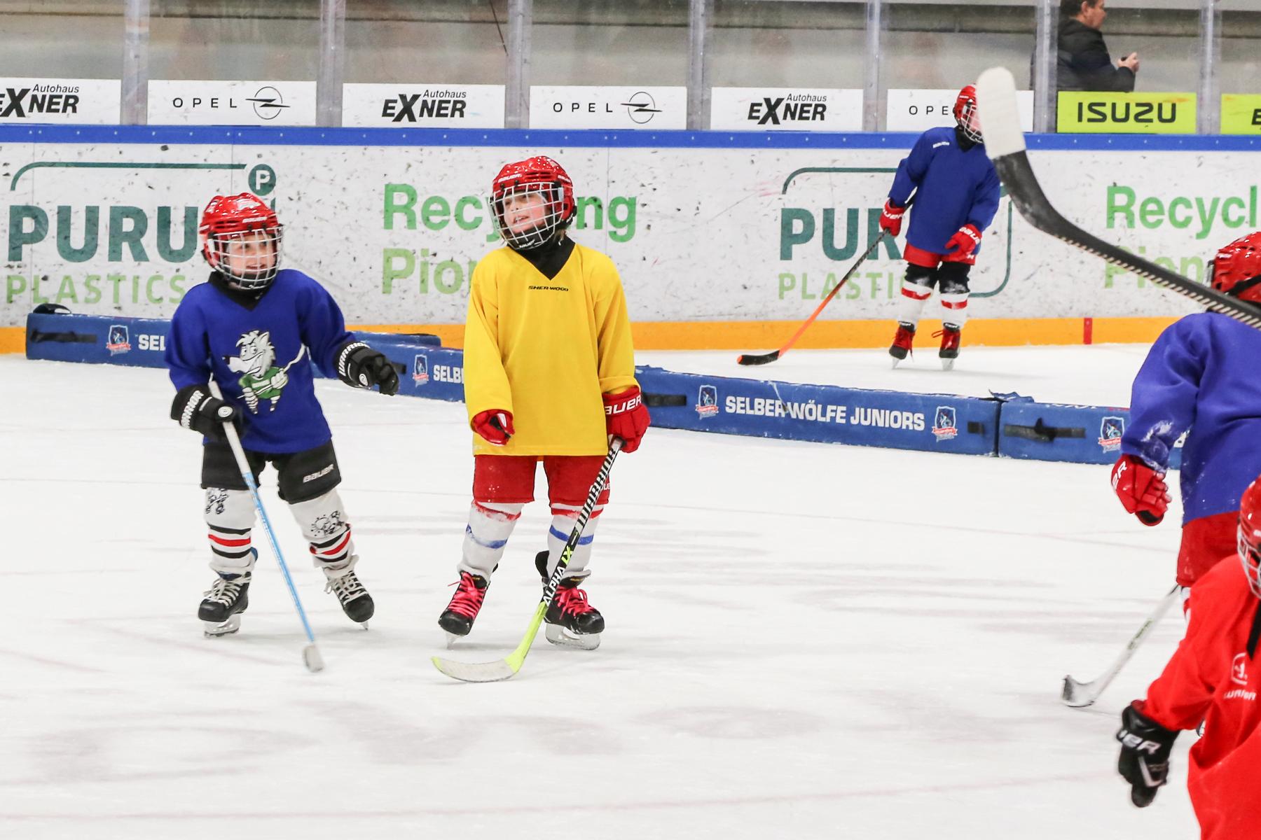 Ausgerüstet mit Helm, Schonern, Handschuhen und Schlittschuhen konnten die Kids auf dem Eis an unterschiedlichen Stationen ihr Können ausprobieren.