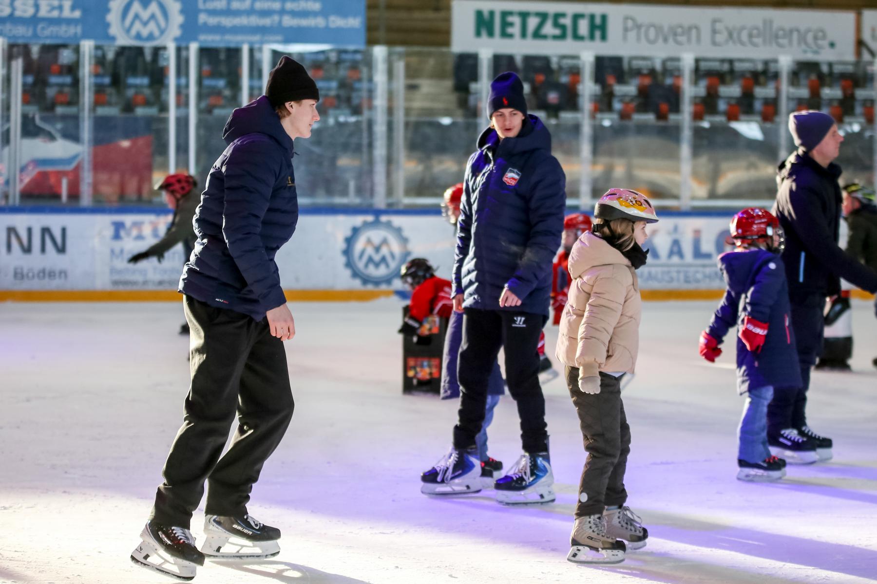 Am Samstag wartete dann das absolute Highlight der Woche: die erste Kindereisdisco in der NETZSCH Arena. Zahlreiche Kids nutzten die Gelegenheit, zur Musik über das Eis zu flitzen – manche machten mit Unterstützung der Spieler und Maskottchen Wolfi sogar ihre allerersten Schritte auf dem Eis. Der Andrang war groß, nicht nur auf der Eisfläche, sondern auch bei der anschließenden Autogrammstunde, bei der sich die Kinder die Unterschriften ihrer Idole sichern konnten.