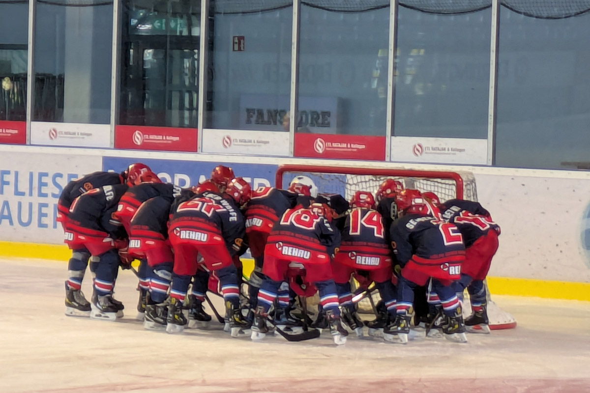 In den letzten beiden Spielminuten bauten die Wölfe eine „Mauer“ vor ihrem Goalie auf und bejubelten am Ende den hart erkämpften Sieg.