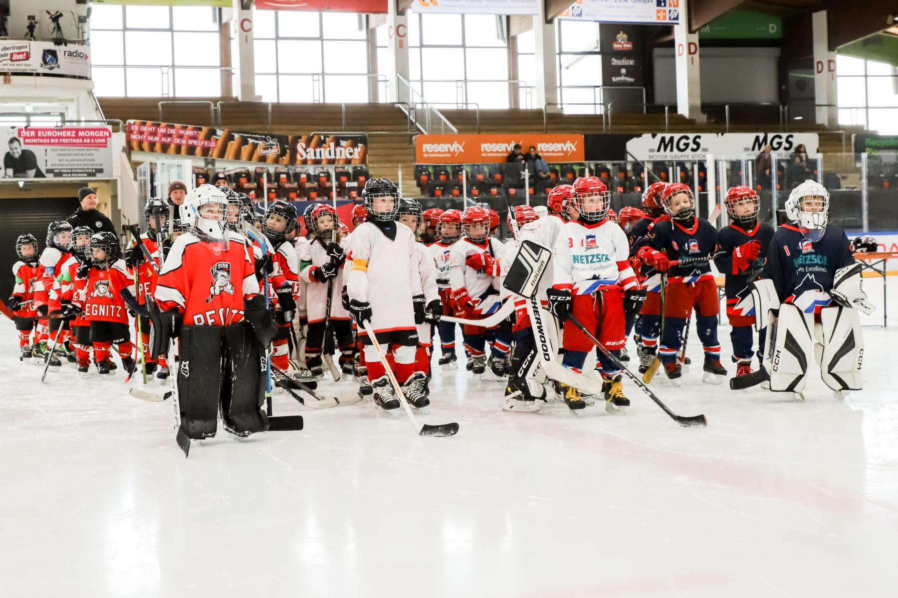 Eishockeykinder erfreuen die zahlreichen Zuschauer